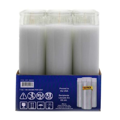 Velas altas multiuso blancas envase de vidrio, pack de 12 unidades