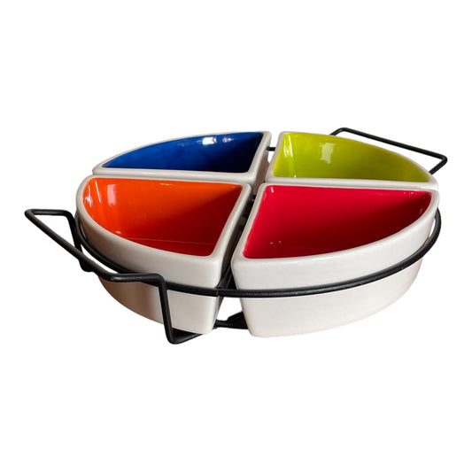 Copetinero de cerámica de colores con base metálica para servir picadas